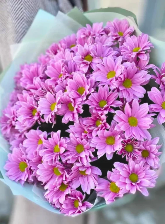 Букет из сиреневых хризантем считаются идеальным символом влюбленности, романтичности, нежных чувств. Нежные цветочные композиции часто дарят юным девушкам и девочкам. Это прекрасный способ поздравить с важной личной датой или выразить искреннюю, зарождающуюся симпатию. Стильное и аккуратное оформление подчеркивает удивительную красоту растений.