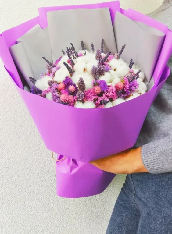 Доставка цветов / Лаванда, Статица / Букет из статицы, хлопка и лаванды