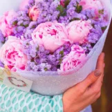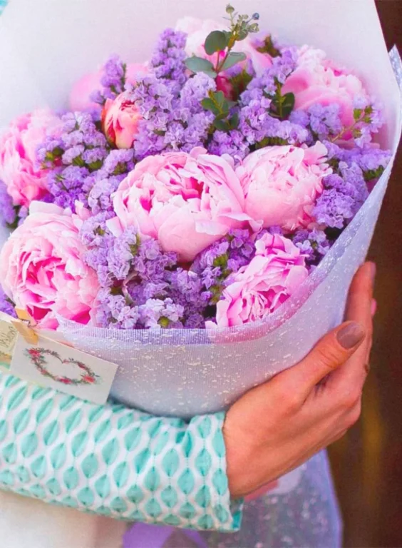 Доставка цветов / Пионы, Статица / Букет из статицы и пионов
