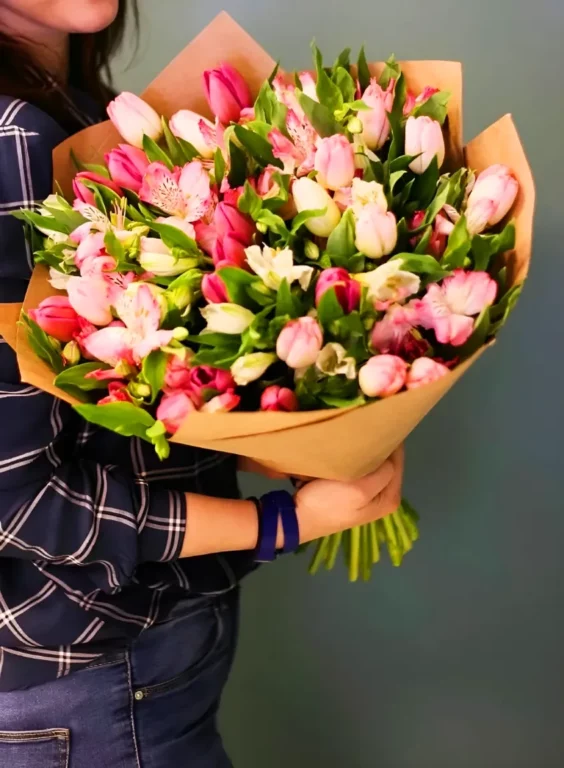 Доставка цветов / Альстромерии, Тюльпаны / Букет из тюльпанов и альстромерии