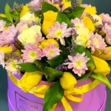Доставка цветов / Розы, Тюльпаны, Хризантемы / Букет из тюльпанов и хризантем