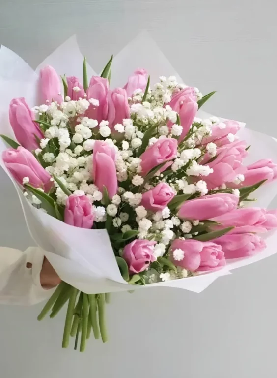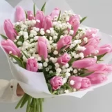 Доставка цветов / Гипсофилы, Тюльпаны / Букет из тюльпанов с гипсофилой