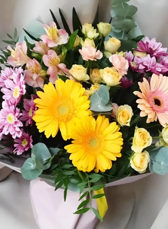 Доставка цветов / Альстромерии, Герберы, Розы, Хризантемы / Букет «Izobilie»