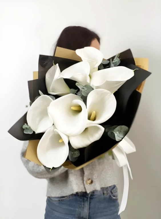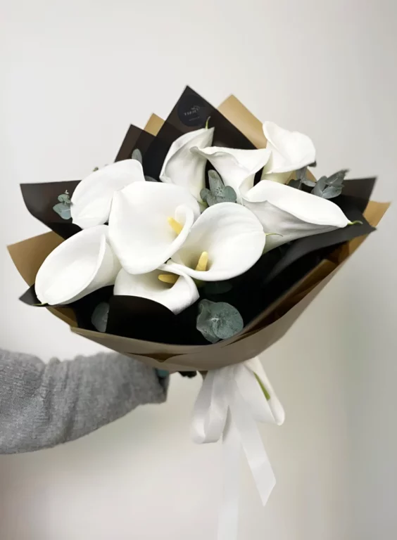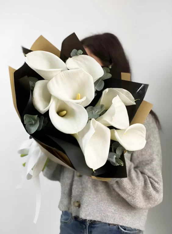 Доставка цветов / Каллы, Эвкалипт / Букет «Laskovyj vzglyad»