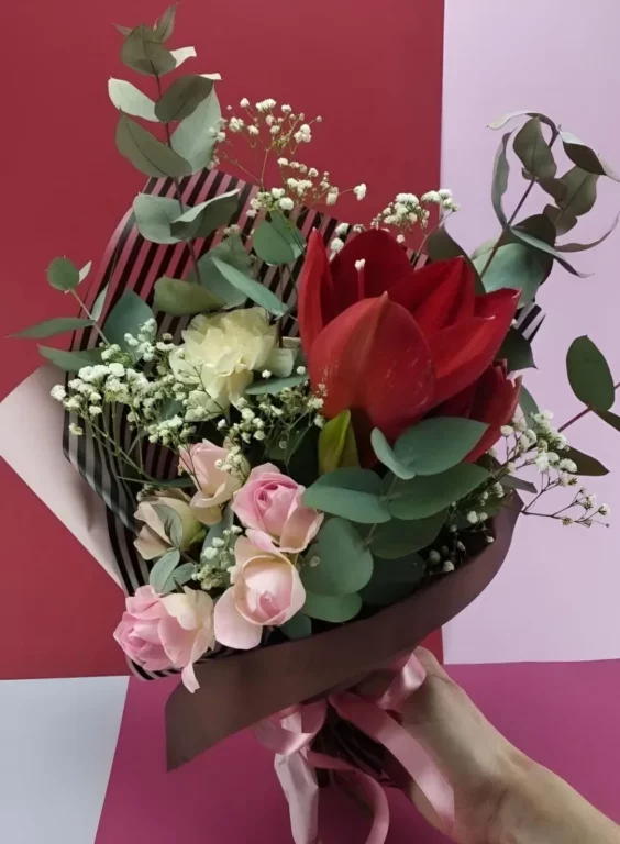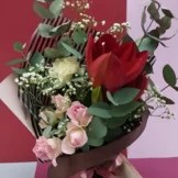 Доставка цветов / Амариллисы, Розы, Эвкалипт / Букет «Marsel»