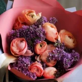Доставка цветов / Ранункулюсы, Сирень / Букет «Mir na dvoih»