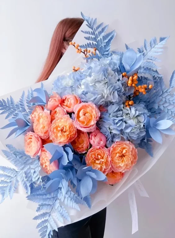 Доставка цветов / Гортензии, Розы / Букет «Moroznyj den»