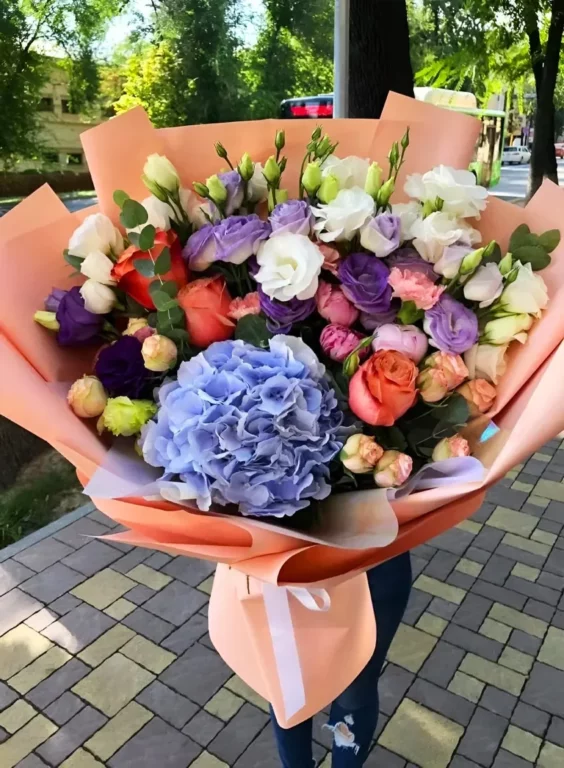 Доставка цветов / Гортензии, Лизиантусы, Розы / Букет «Na lyuboj sluchaj»