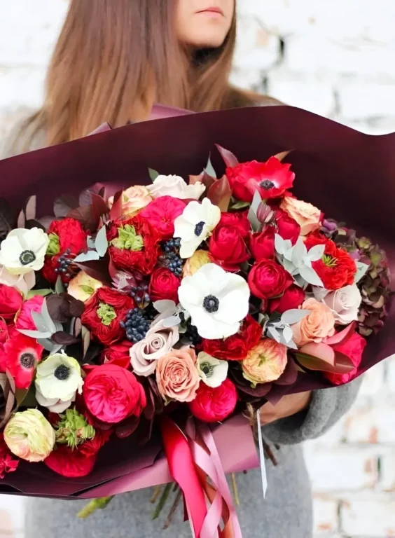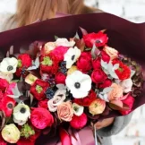 Доставка цветов / Анемоны, Розы / Букет «Plamennye chuvstva»