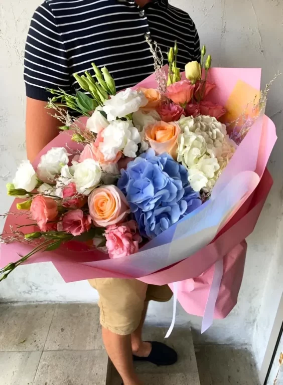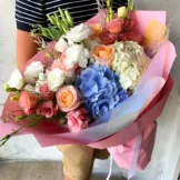 Доставка цветов / Гортензии, Лизиантусы, Розы / Букет «Пленительный аромат»