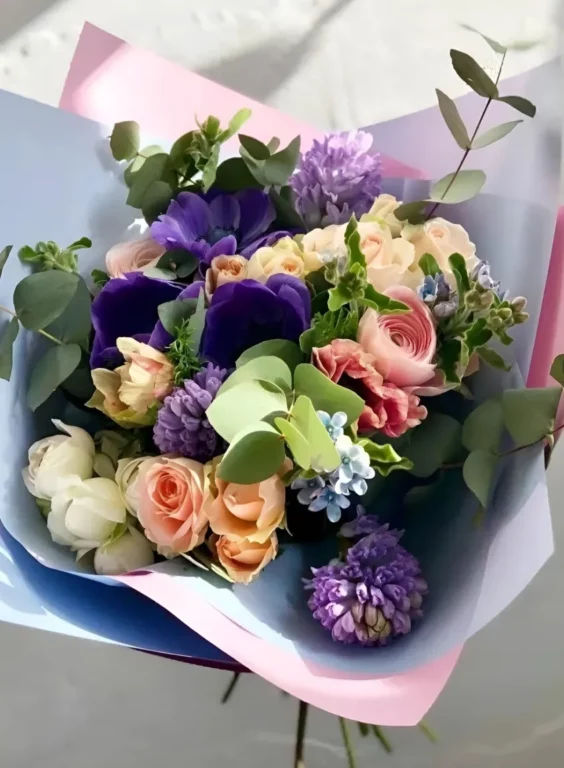 Доставка цветов / Анемоны, Гиацинты, Ранункулюсы, Розы / Букет «Poka my ryadom»