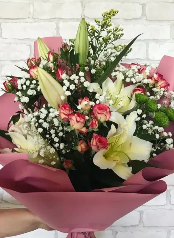 Доставка цветов / Гипсофилы, Лилии, Розы, Хризантемы / Букет «Prizrachnaya krasota»