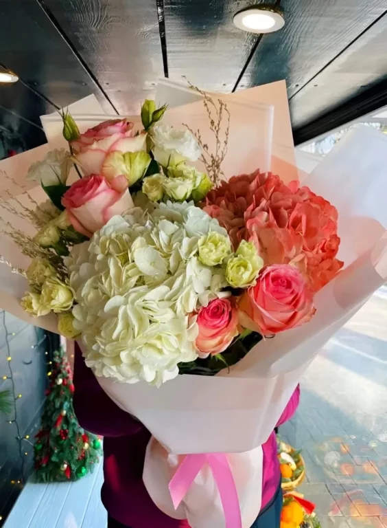 Доставка цветов / Гортензии, Розы / Букет «Robkaya nadezhda»