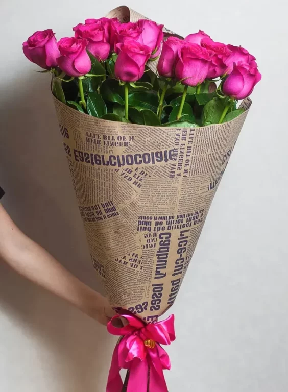 Доставка цветов / Розы / Букет розовых метровых роз в крафте