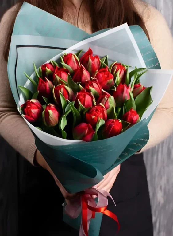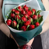 Доставка цветов / Тюльпаны / Букет «Rubinovoe siyanie»