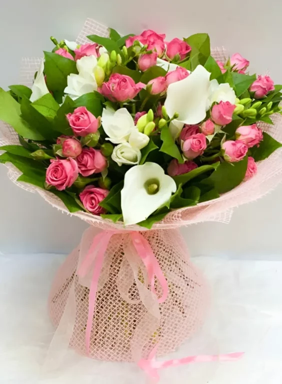 Доставка цветов / Каллы, Розы, Фрезии / Букет с каллами и розами