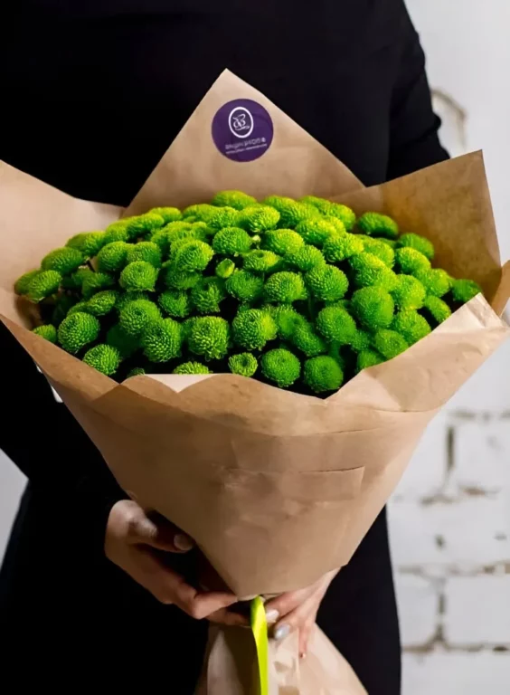 Букет с зеленой хризантемой станет прекрасным дополнением к подарку на день всех влюбленных, день рождения или другое торжественное событие. Стильная цветочная композиция точно порадуют современную девушку, которая ценит оригинальные решения. Оттенок цветов означает пожелание счастья, благополучия и достатка, поэтому также прекрасно подходит для поздравления с новосельем.