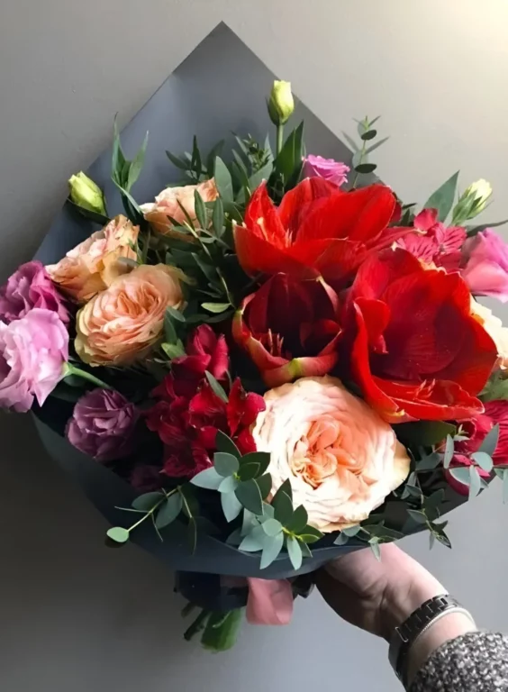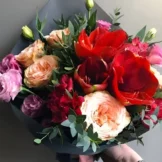 Доставка цветов / Амариллисы, Розы / Букет «Schaste»