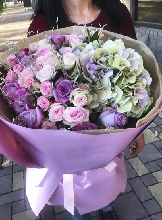 Доставка цветов / Гортензии, Розы / Букет «Sirenevyj zakat»