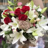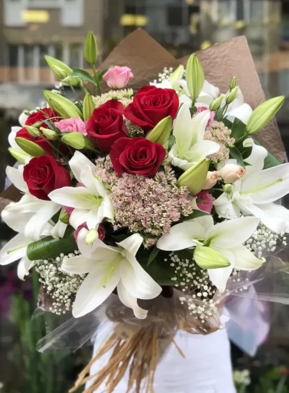 Доставка цветов / Лизиантусы, Лилии, Розы / Букет «Skromnaya ulybka»