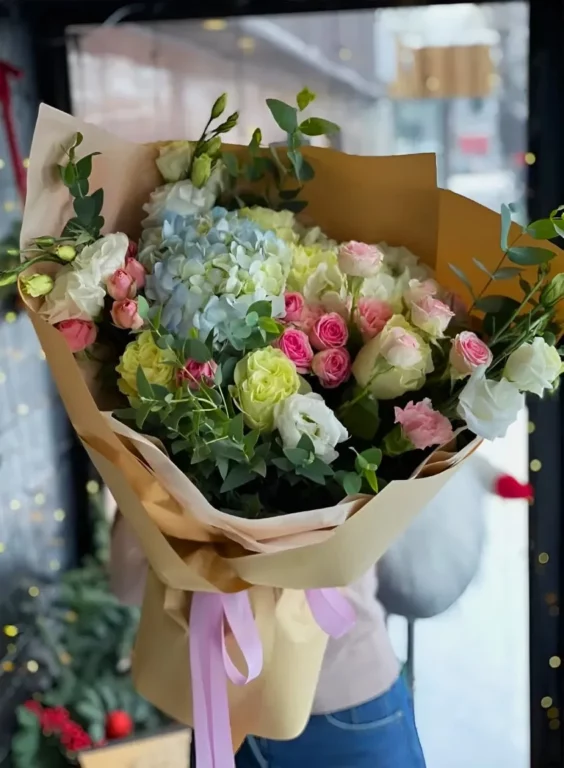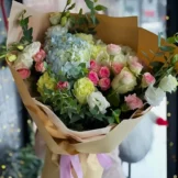 Доставка цветов / Гортензии, Розы, Эвкалипт / Букет «Skuchayu po tebe»