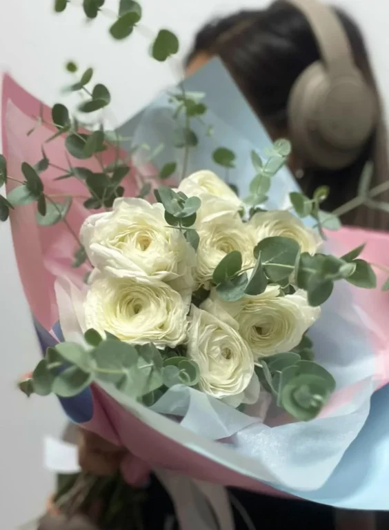Доставка цветов / Ранункулюсы / Букет «Teplye obyatiya»