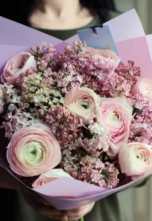 Доставка цветов / Ранункулюсы, Сирень / Букет «Vechnost»