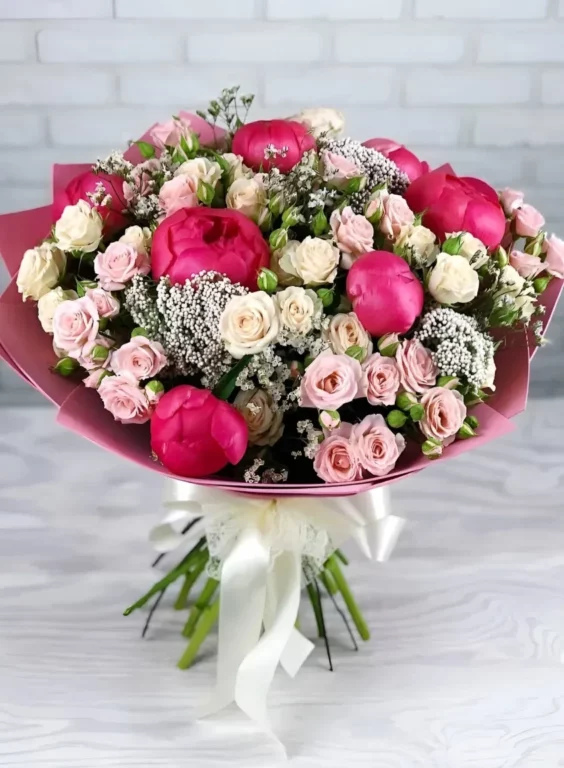 Доставка цветов / Пионы, Розы / Букет «Veter peremen»