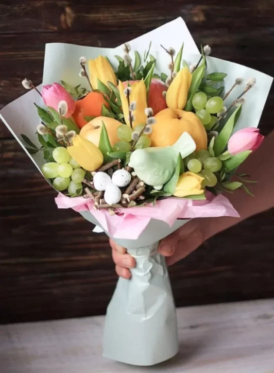 Доставка цветов / Съедобные букеты / Фруктовый букет с тюльпанами