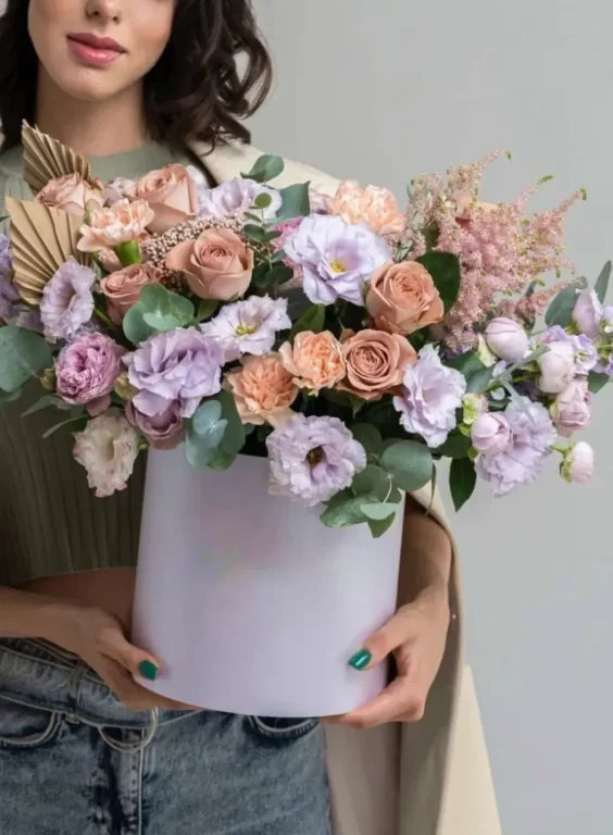 Доставка цветов / Гвоздики, Лизиантусы, Маттиола, Розы / Композиция «Cvetochnaya vecherinka»