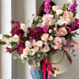 Доставка цветов / Акции, Гвоздики, Лизиантусы, Маттиола, Розы, Хризантемы / Композиция «Гардения»
