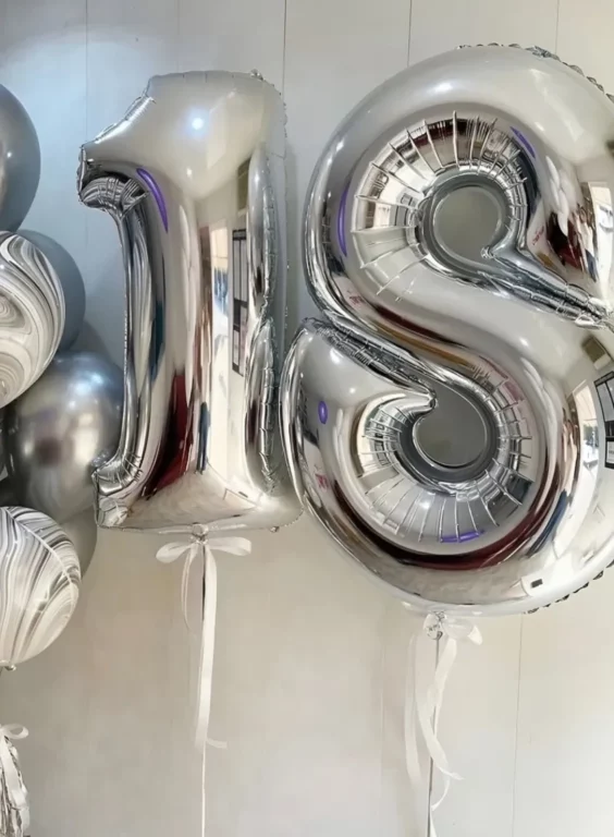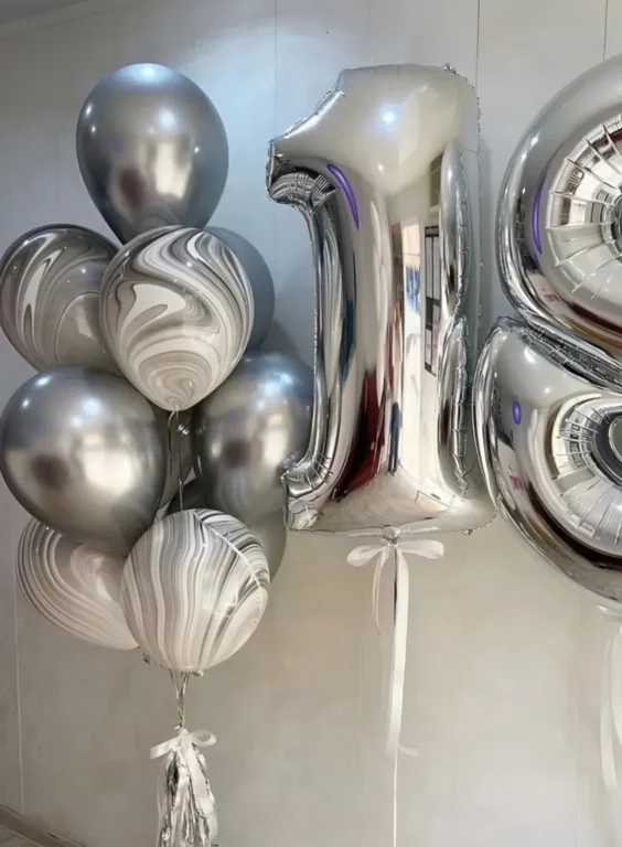 Доставка цветов / Шары / Хромированные шары Алматы / Композиция из шаров «Veselyjj den rozhdeniya»
