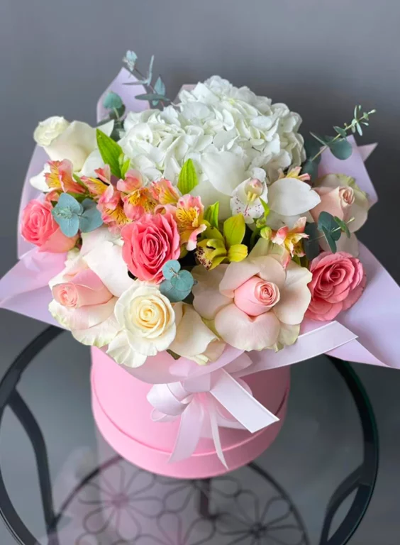 Доставка цветов / Альстромерии, Гортензии, Орхидеи, Розы / Композиция «Je taime»