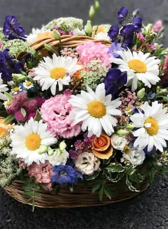 Доставка цветов / Лизиантусы, Розы, Ромашки / Композиция «Margaret»
