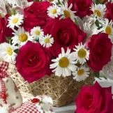 Доставка цветов / Альстромерии, Розы, Ромашки / Композиция «Master i Margarita»