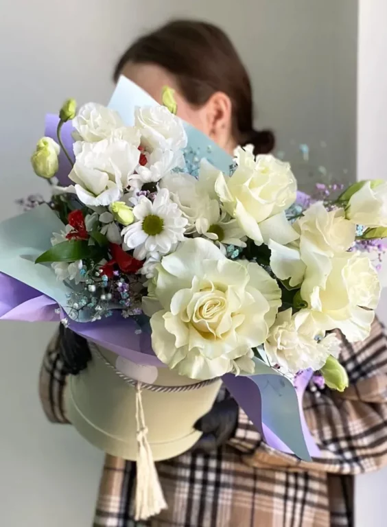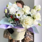 Доставка цветов / Альстромерии, Гипсофилы, Лизиантусы, Розы, Хризантемы / Композиция «Мосчино»