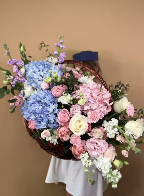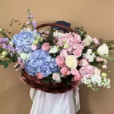 Доставка цветов / Гвоздики, Гортензии, Лизиантусы, Маттиола, Розы, Хризантемы / Композиция «Pandora»