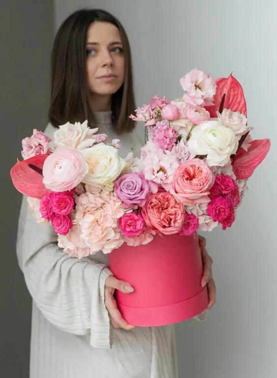 Доставка цветов / Антуриумы, Гортензии, Каталог 8 Марта, Лизиантусы, Розы / Композиция «Паул»