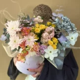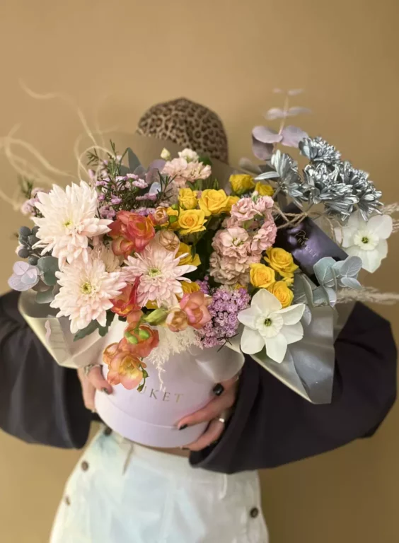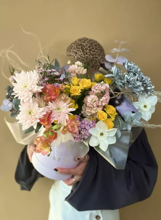 Доставка цветов / Брунии, Маттиола, Нарциссы, Розы, Фрезии, Хризантемы / Композиция «Суприм»