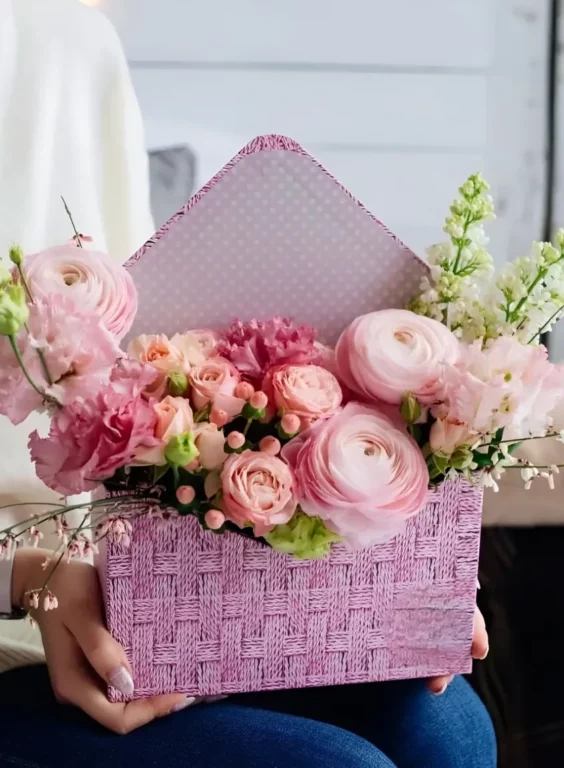 Доставка цветов / Лизиантусы, Ранункулюсы, Розы / Композиция «Tyoplyj privet»