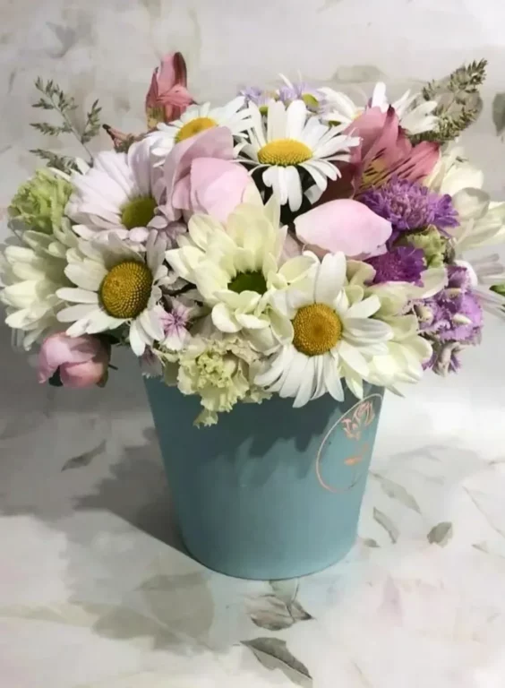Доставка цветов / Альстромерии, Лизиантусы, Ромашки, Хризантемы / Композиция «Vera»