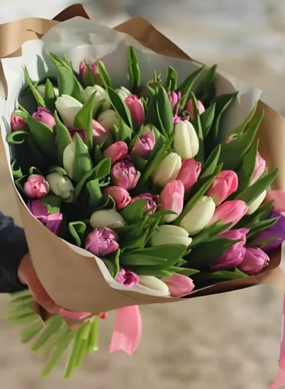 Доставка цветов / Каталог 8 Марта, Тюльпаны / Микс из 51 тюльпана