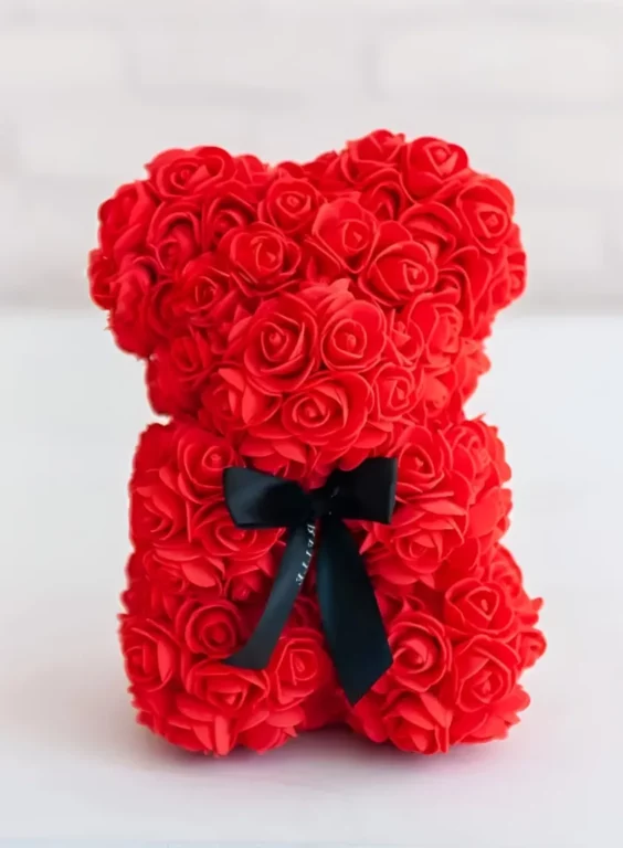 Мишка 25 см выполнен из 3D роз. Стильный и необычный подарок поможет по-настоящему удивить близкого человека. Изысканный презент станет напоминанием о ваших чувствах, отношении на долгие годы. Очаровательный запоминающийся сюрприз как для взрослого, так и для ребенка. Море позитива гарантировано.