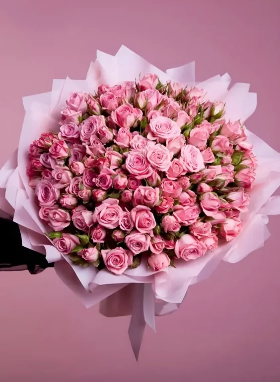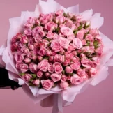 Розовые кустовые розы станут причиной искренней радости получателя. С помощью цветочной