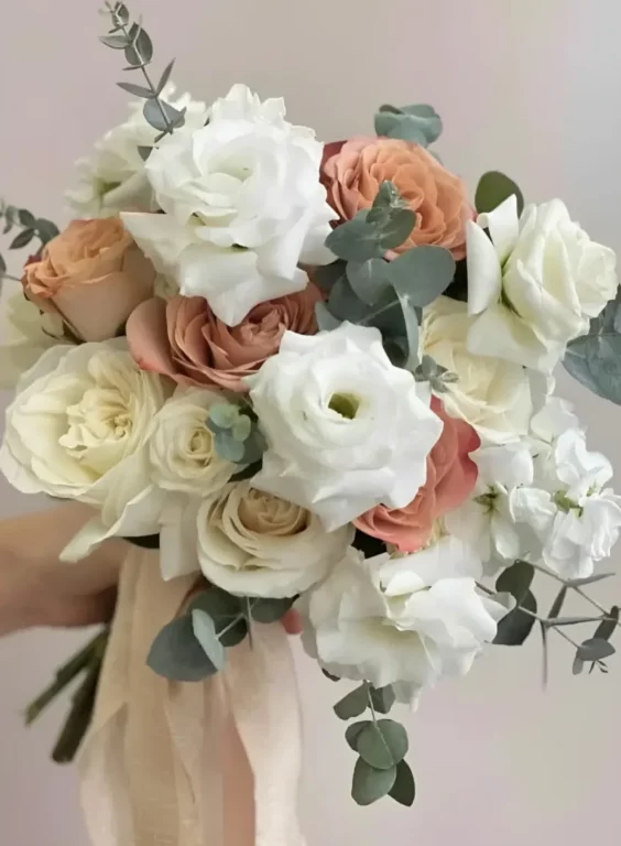 Доставка цветов / Лизиантусы, Розы, Эвкалипт / Свадебный букет «Navechno»