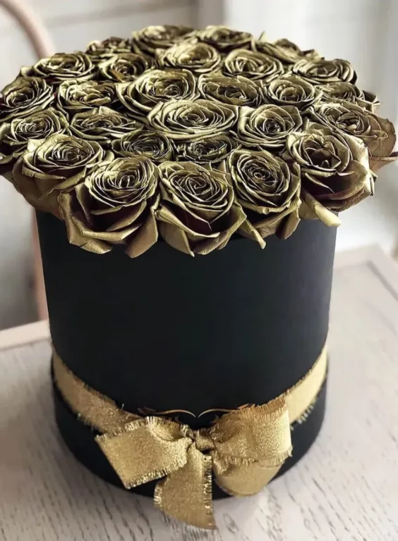 Золотые розы в коробке созданы специально для любителей истинной роскоши и изысканности.