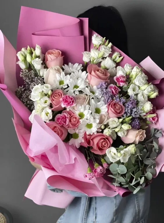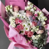 Доставка цветов / Гвоздики, Лизиантусы, Розы, Хризантемы, Эвкалипт / Букет «Adazhio»