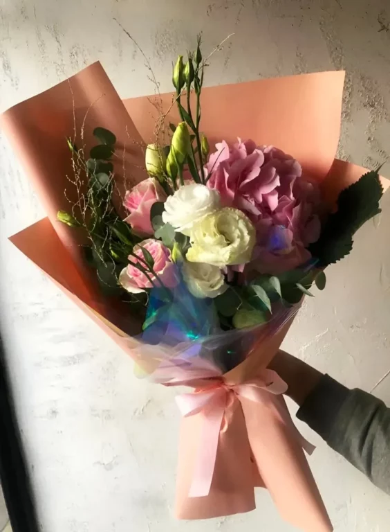 Доставка цветов / Гортензии, Лизиантусы, Розы / Букет «Edinstvennaya moya»