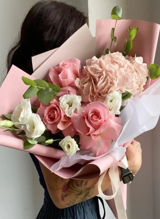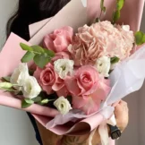 Доставка цветов / Гортензии, Лизиантусы, Розы / Букет «Флай ми ту зэ мун»