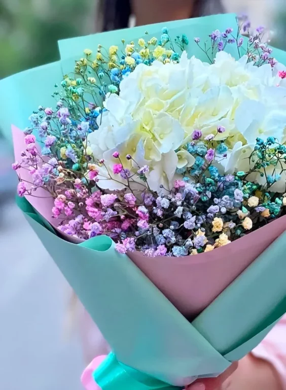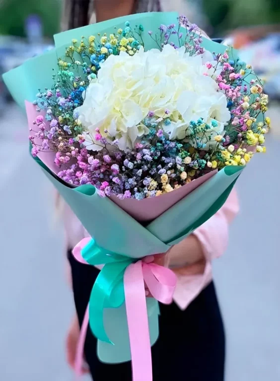 Доставка цветов / Гипсофилы, Гортензии / Букет из гортензии и гипсофилы